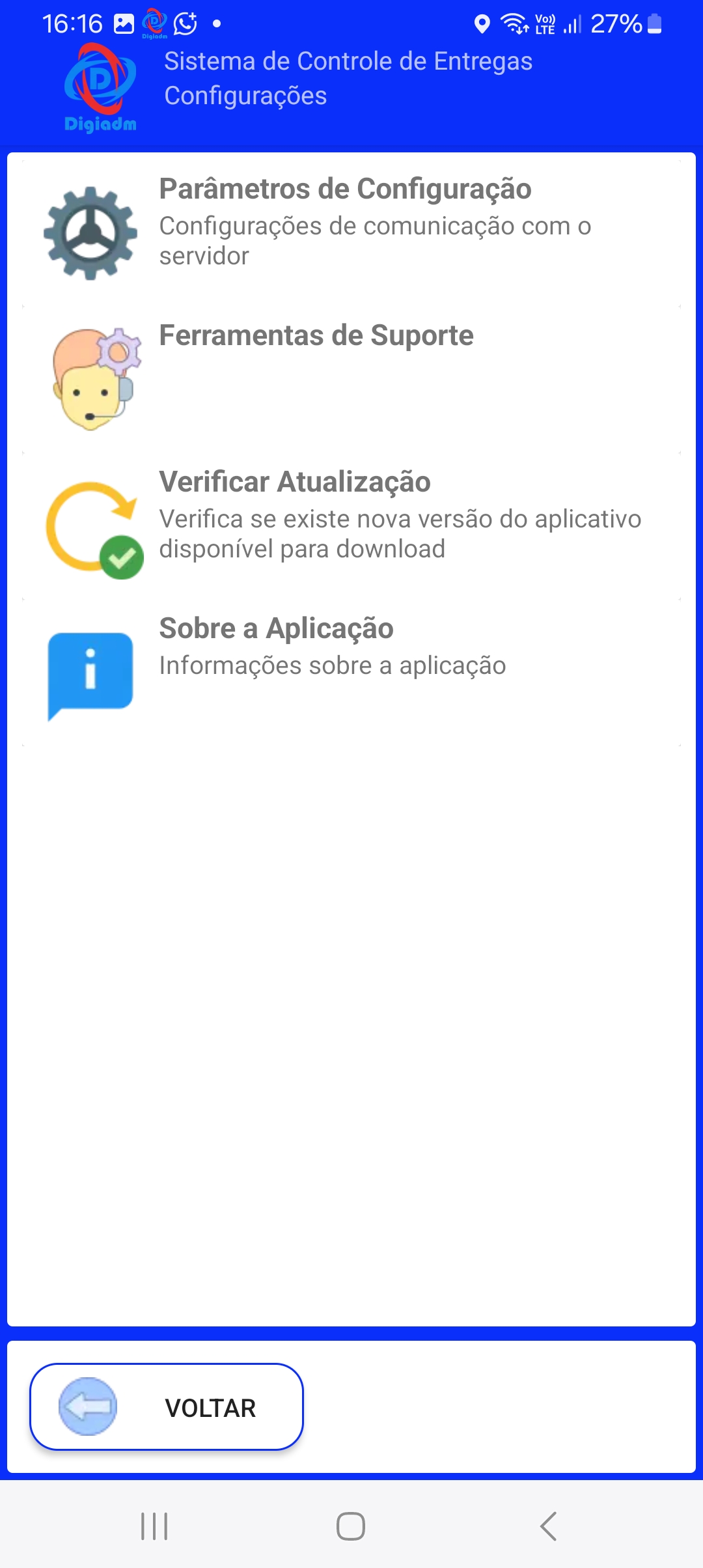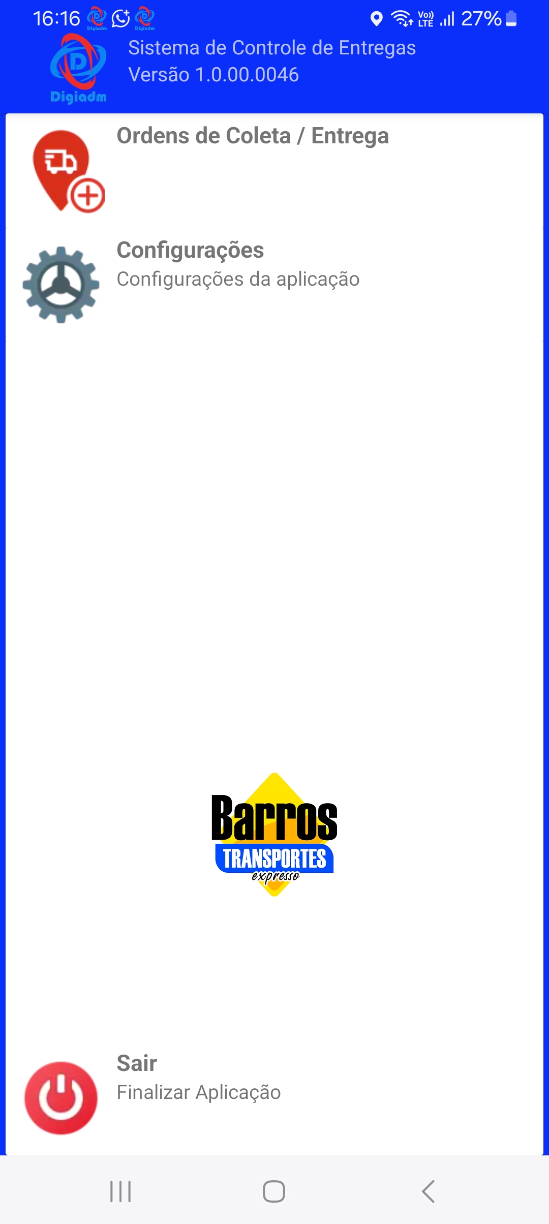 Na tela inicial do aplicativo, depois de liberado, irá constar a parte de Ordens de Coleta/Entrega e também a aba de Configurações.