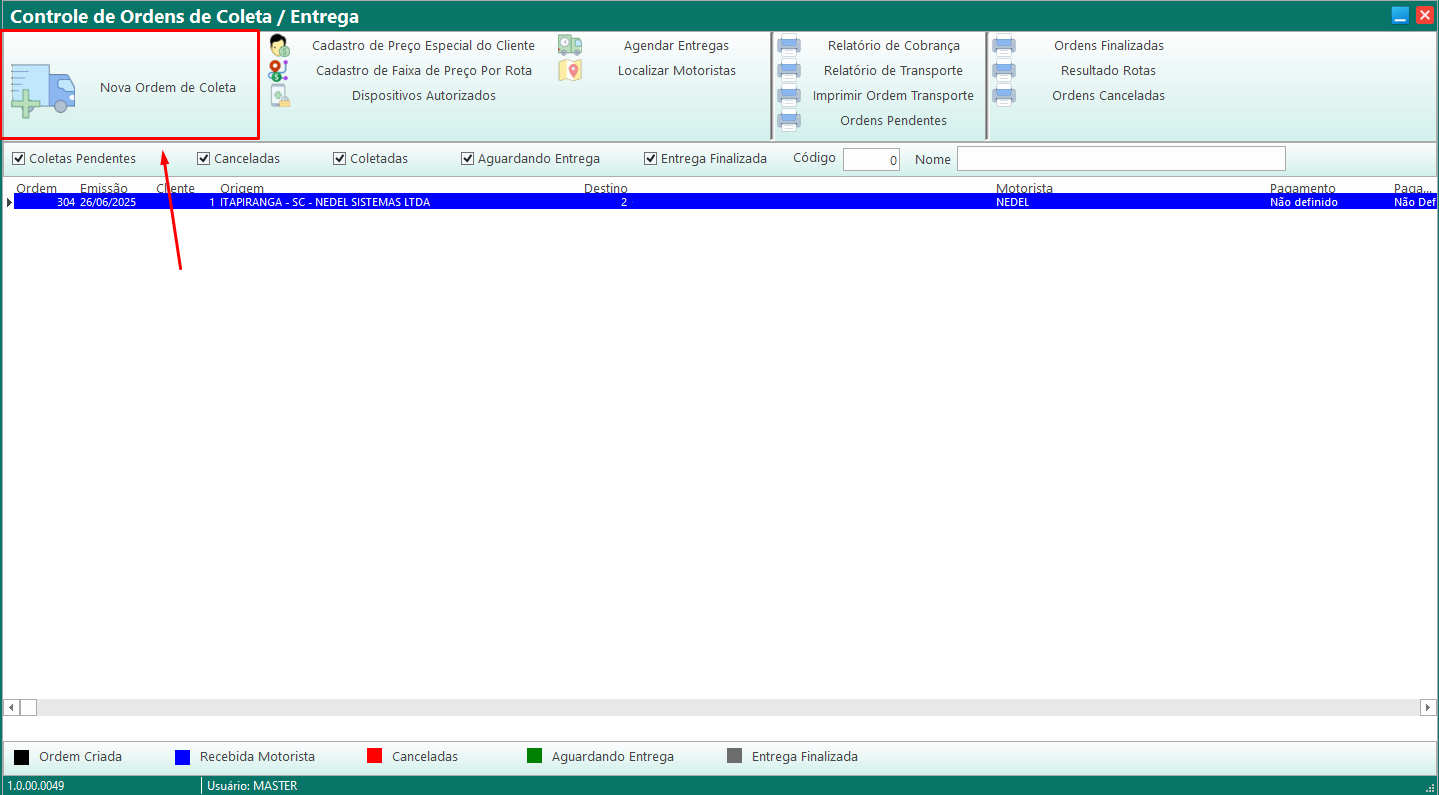 Clicando no botão acima marcado, é possível abrir uma nova ordem.