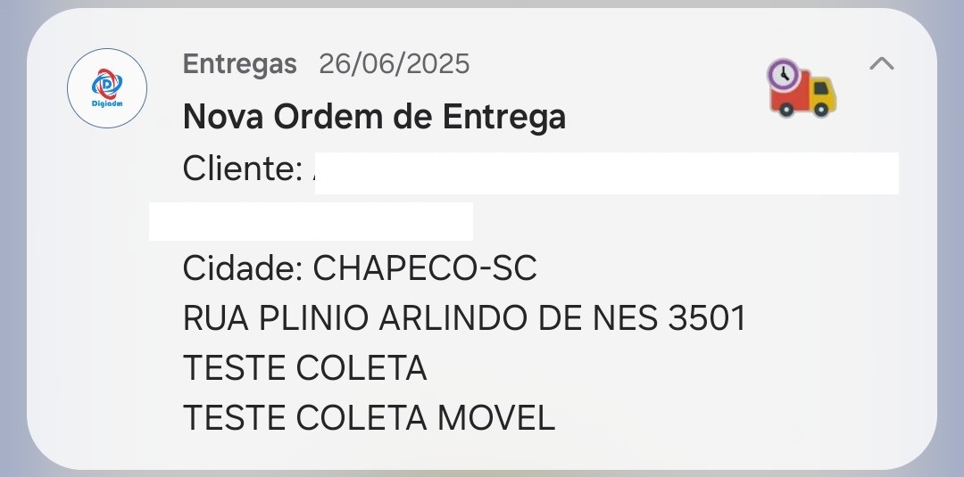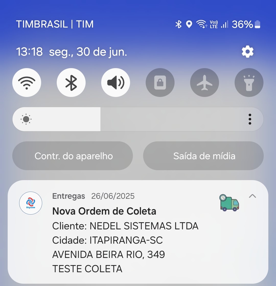 Ao finalizar o preenchimento das informações da nova coleta, o motorista irá receber o aviso no celular, para que ele já consiga dar sequência no atendimento.