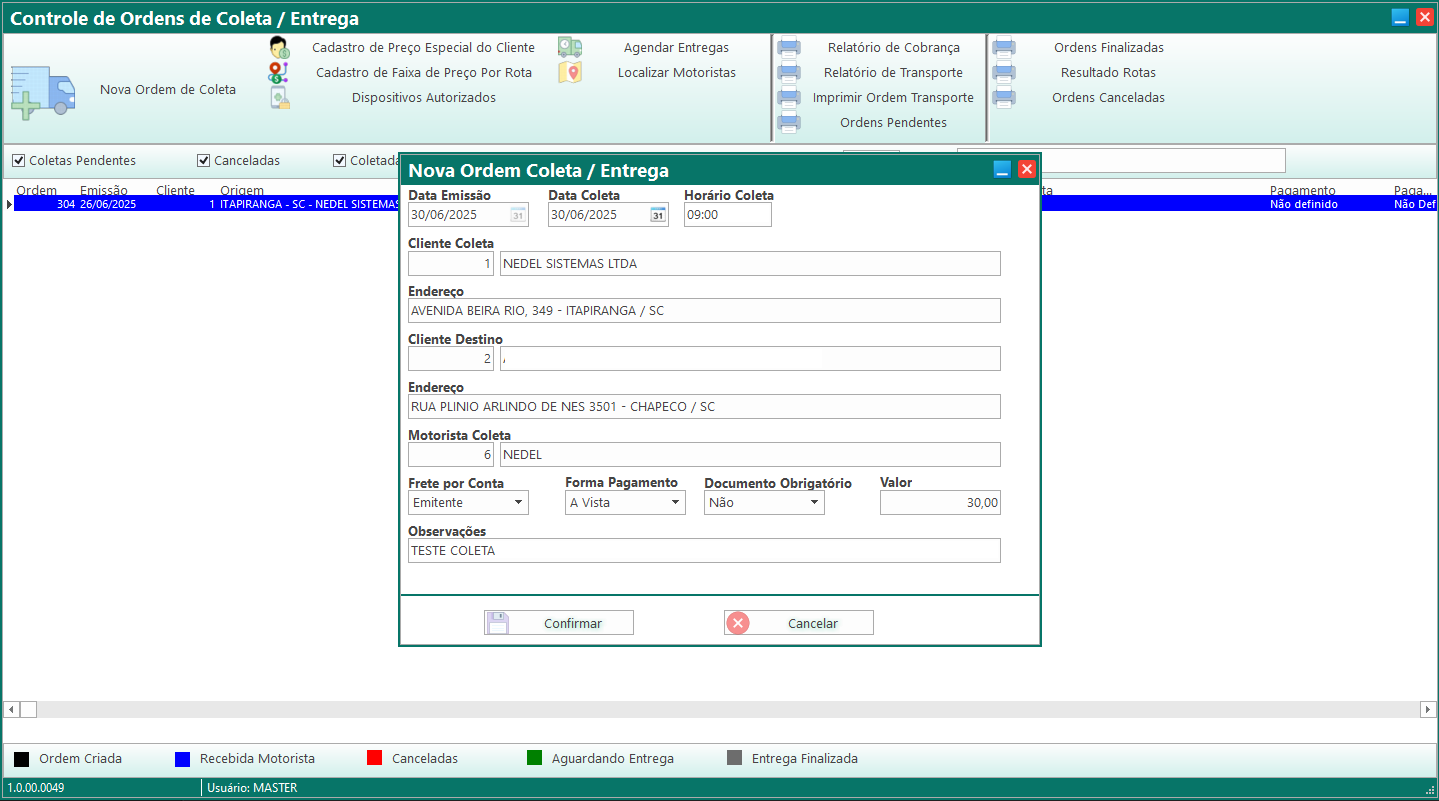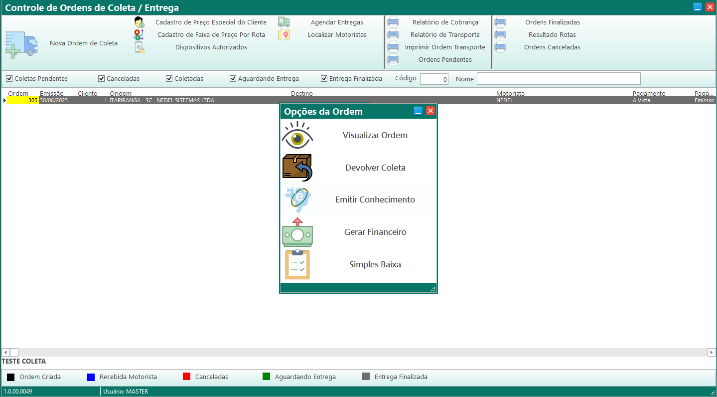 Trazemos aqui uma pequena demonstração de como é feito a abertura de uma ordem de coleta até a sua finalização.