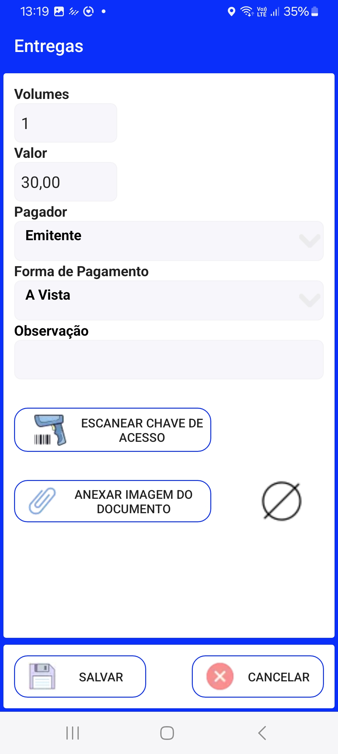 Aqui algumas informações já preenchidas no aplicativo retaguarda irão puxar automaticamente, caso contrário, o motorista as deve preencher antes de seguir, também anexando uma imagem (opcional).