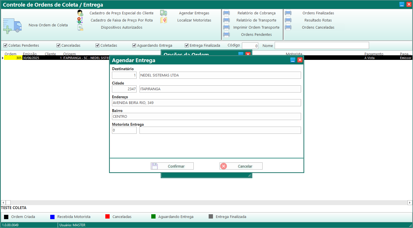 Será solicitado o motorista responsável pela entrega, selecione-o e salve.