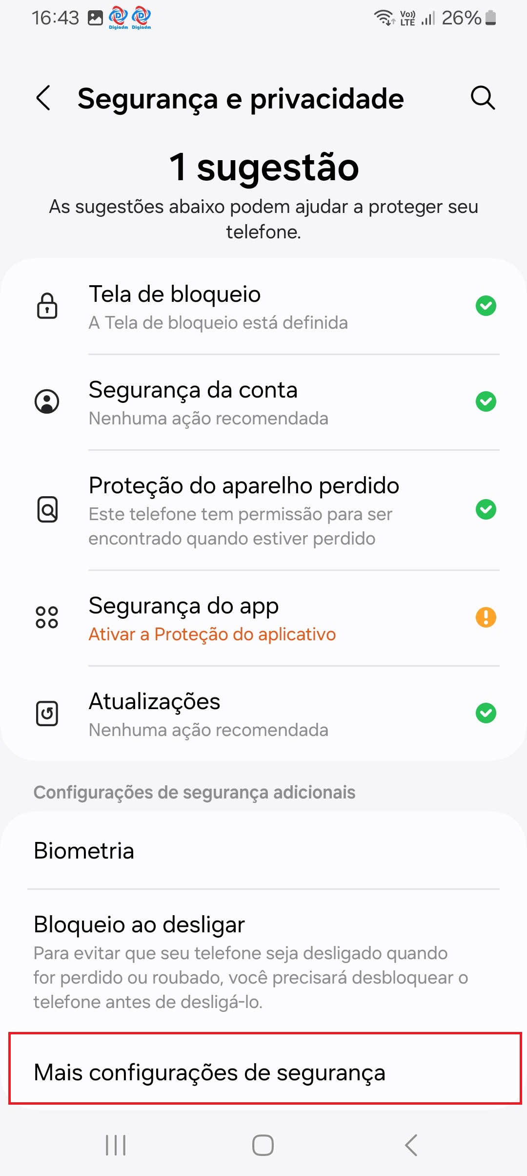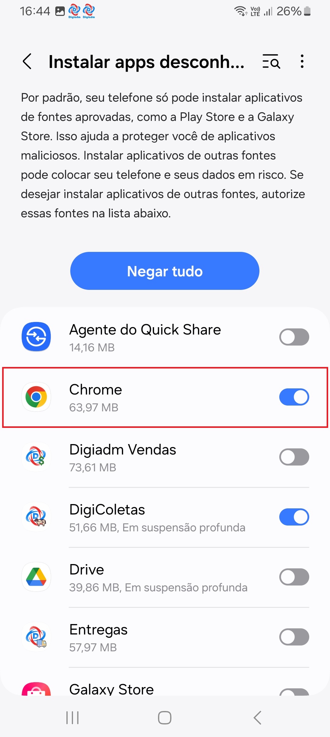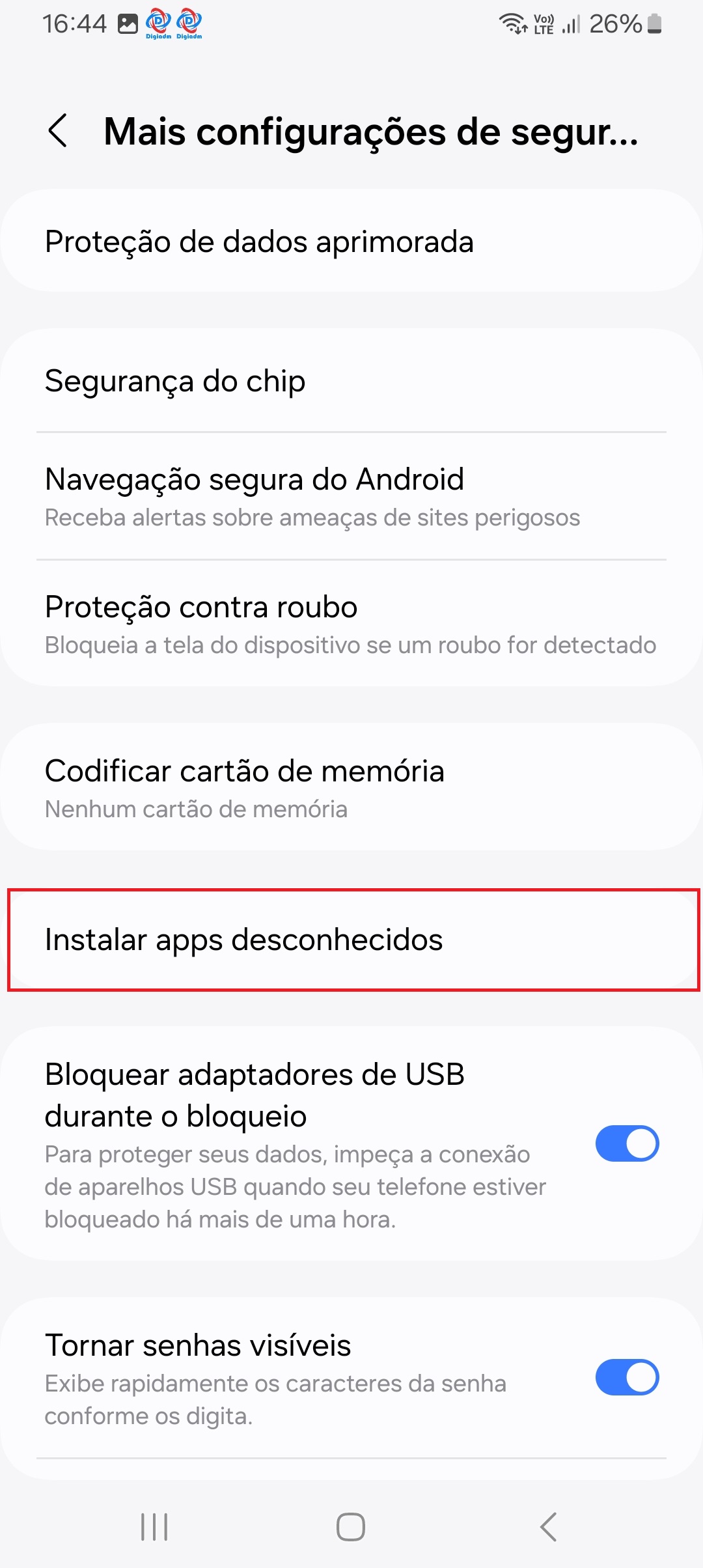 No exemplo utilizamos um celular com Android 14, caso seu celular for uma versão diferente, busque no navegador de como liberar a instalação de fontes desconhecidas para o seu modelo.