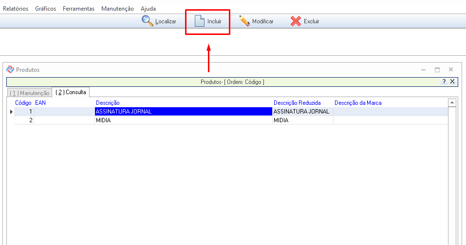 Se o item ainda não estiver cadastrado, clique em Incluir na parte superior.