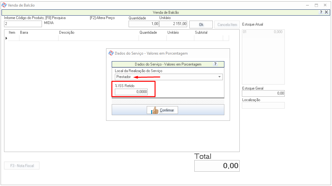 Informe os dados de ISS (se possuir) e clique em confirmar.