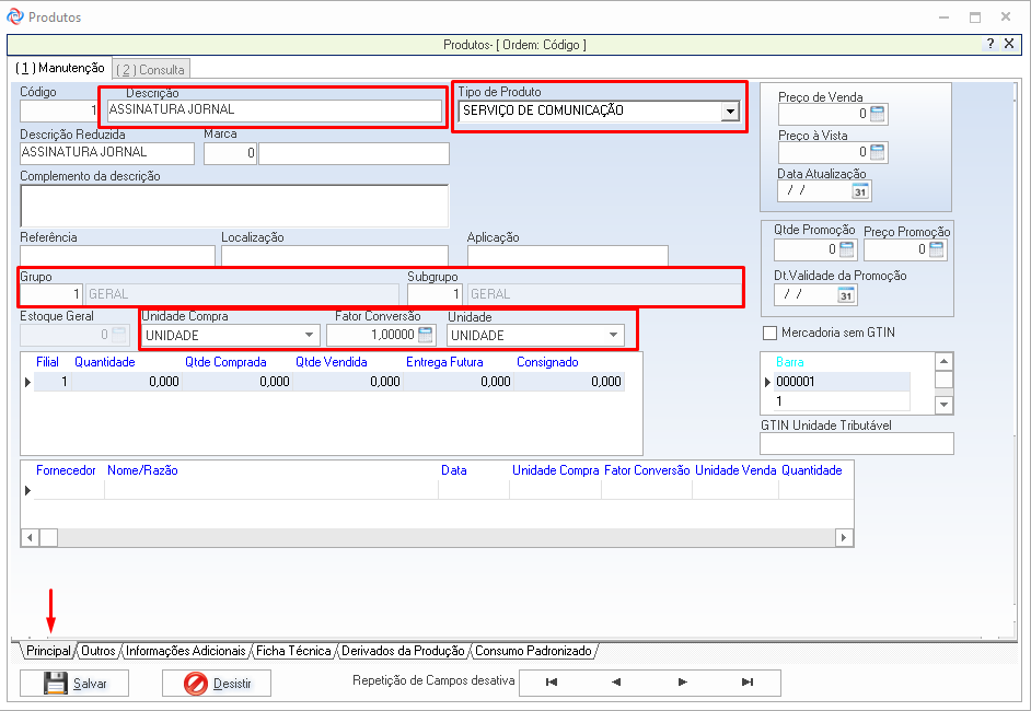 Na tela principal, conforme a imagem abaixo, estas são as informações obrigatórias que precisam ser preenchidas.