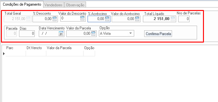 Insira os itens na tela, incluindo quantidade e valor unitário.