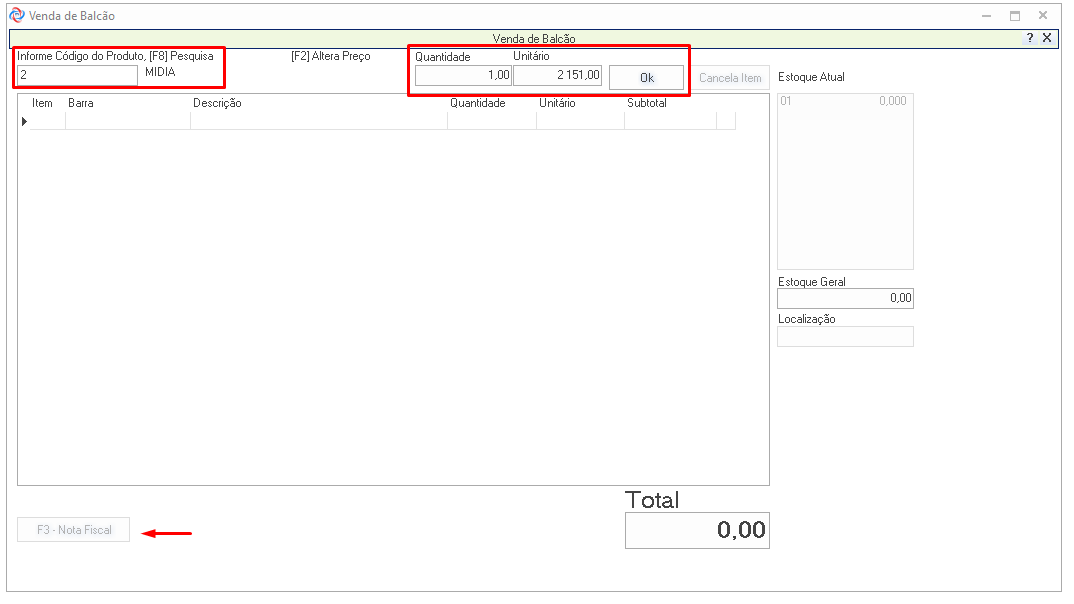 Clique em Nota Fiscal ou pressione F3 para prosseguir